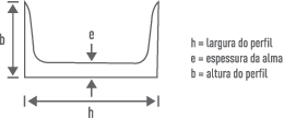 | Bitola (h x b) | Alma | Espessura da alma (e) | Peso teórico kg/m |